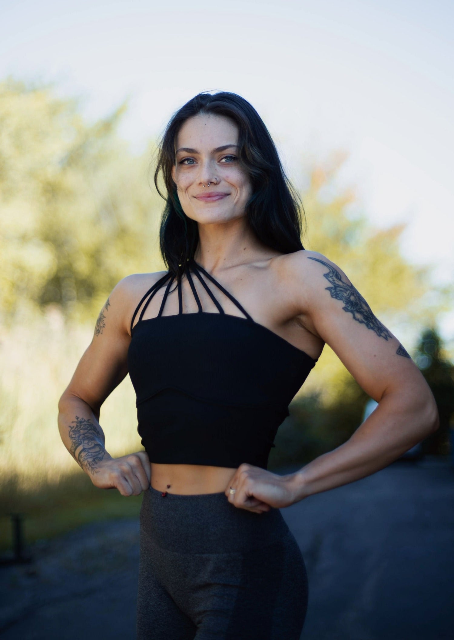 Striking one shouldered piece designed to support you kickin' butt at the gym or looking fuego in a pair of jeans and some heels on date night: