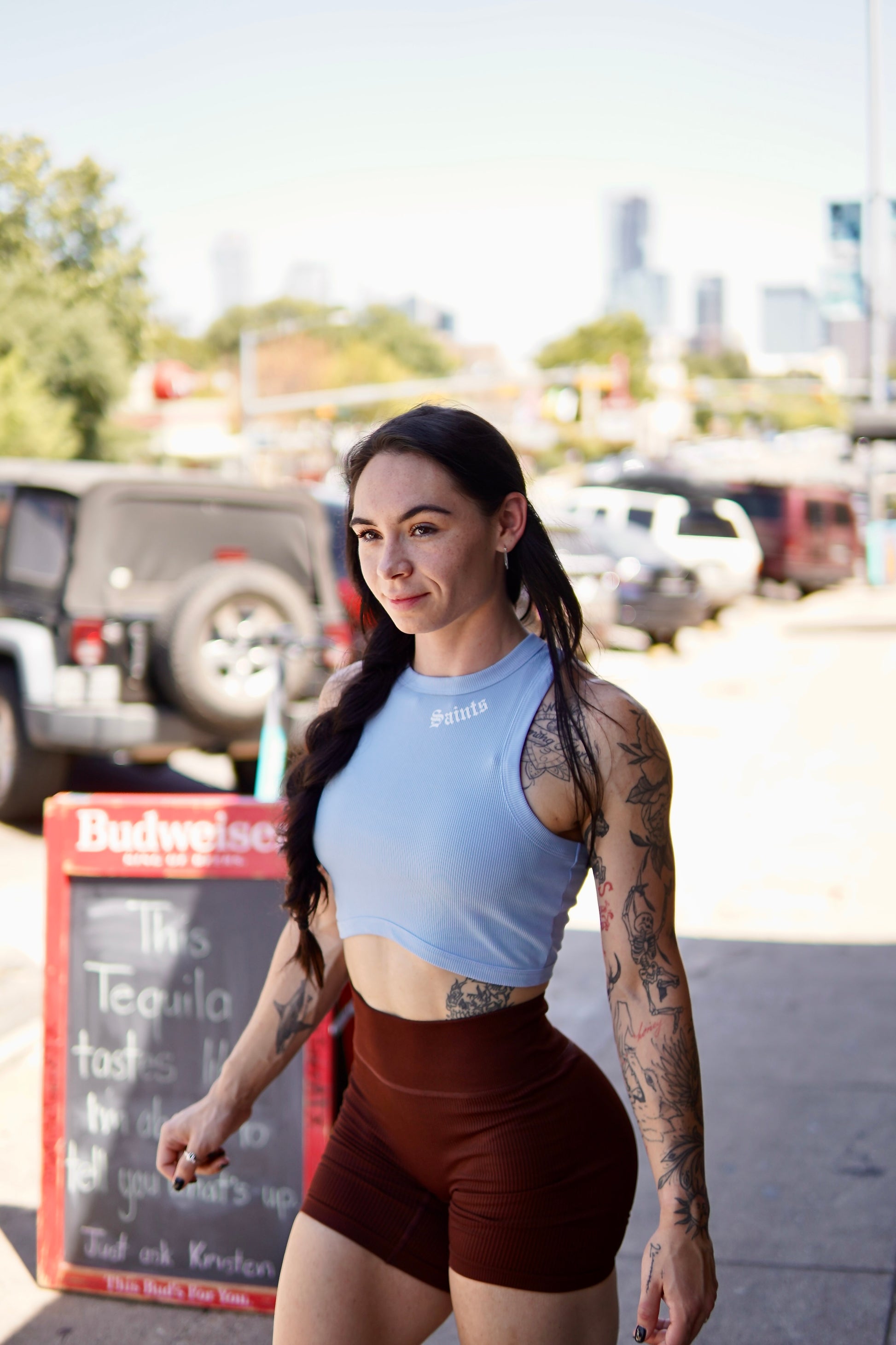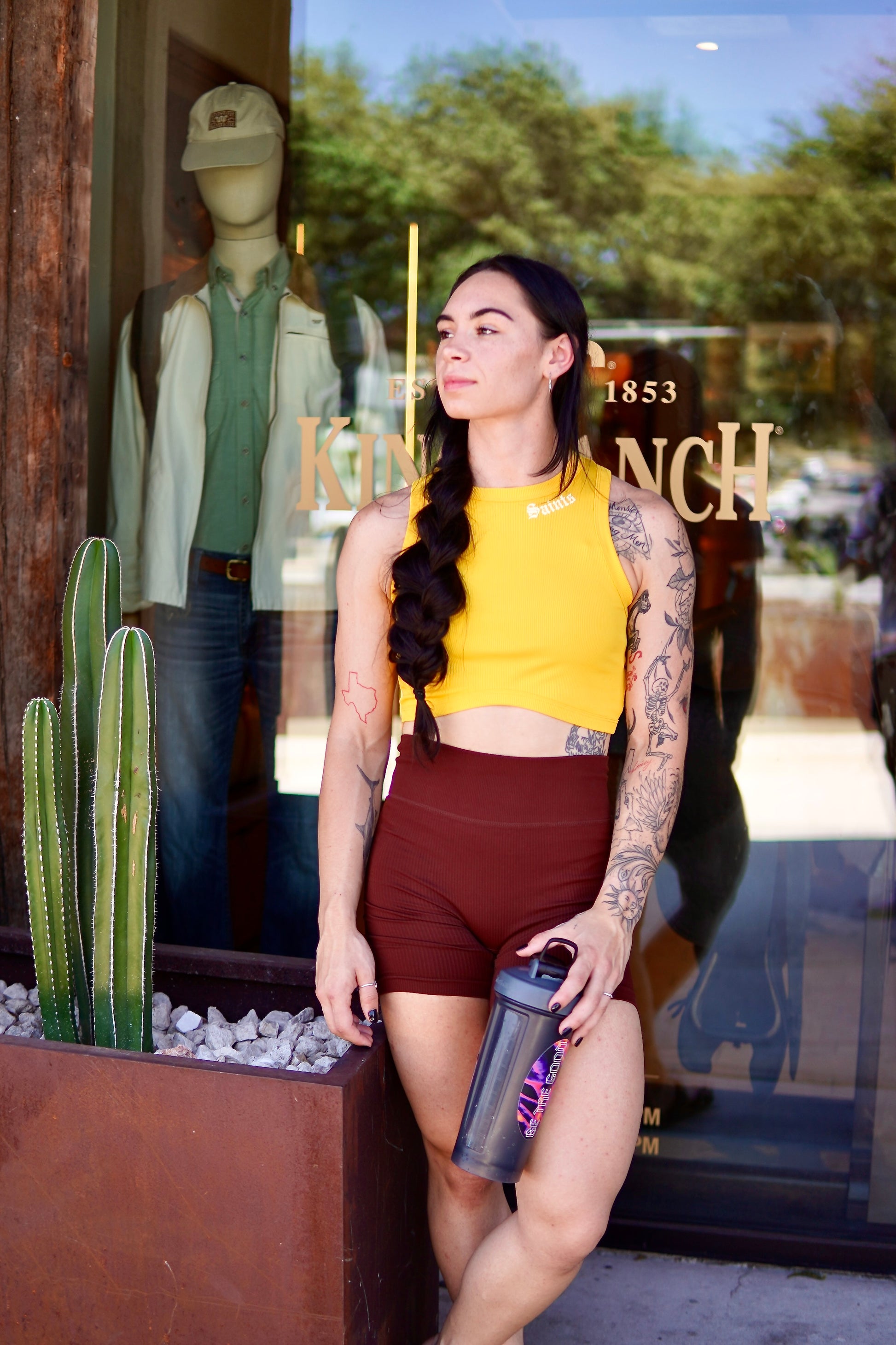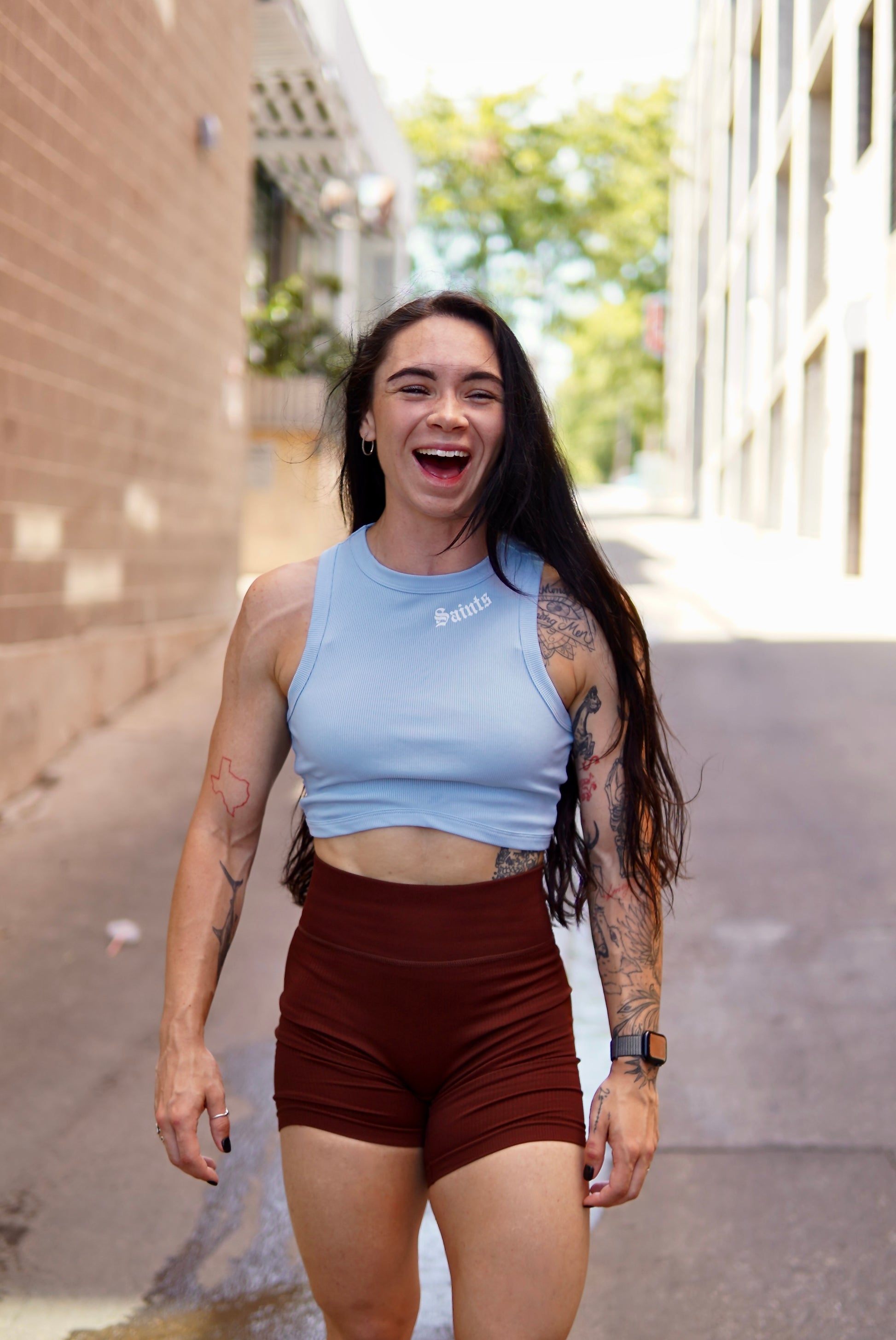 This comfy crop comes in 6 colors and is a very light weight ribbed material.